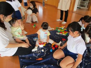 2023.09.25 お知らせ うさちゃんクラブ🐰 9月22日(金)はうさちゃんクラブでした。 今月は、すぎ組さんと一緒に遊び、異年齢との交流をしました。 すぎ組さんの歌の発表やうさちゃんクラブのお友達と ダンスをして楽しみました。 一緒に遊び、優しい声をかけたりと小さい子のお世話が上手なすぎ組さん。 すぎ組さんとうさちゃんクラブのお友達さんが関わる姿が可愛くほっこりしました💗 楽しいひとときを過ごすことができました。 また遊べるといいですね。 ご参加、ありがとうございました。