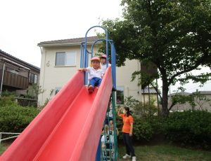2023.09.26 お知らせ ウキウキツアー 今日は楽しみにしていたウキウキツアーでした。 朝は雨が少し降り、子ども達も心配していましたが・・・ 雨も上がり、無事出発できました。 滑り台や散策、ブランコをして元気いっぱいに遊びました。 どんぐりや松ぼっくりと木の実もあり、秋を感じることができました。 また行けるといいですね。 おにぎりも喜んでいました。お家の皆さま、ご準備ありがとうございました。