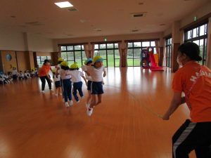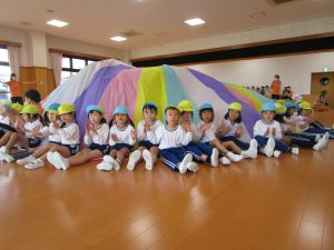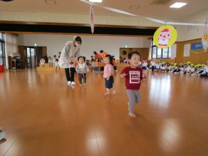 2023.10.06 お知らせ スポーツカーニバル🚩 今日は、スポーツカーニバルを行いました。 もみじ組1歳児さんとかえで組さんは、ゴールを目指して 元気よくかけっこをしました。 さくら組さんは、「わつなぎリレー」 つばき組さんは、「リレー」 すぎ組さんは、「大繩跳び」をしました。 お兄さん、お姉さんの姿を見て、『がんばれ~』と応援してくれた かえで組さんでした。 最後はみんなでバルーンを勇気100%の曲に合わせて行いました。 沢山体を動かし、スポーツの秋を楽しむことができましたね。 今週もありがとうございました。