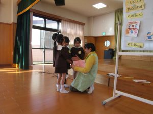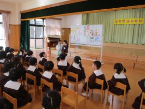 2023.11.22 お知らせ 勤労感謝の集い 勤労感謝の集いをしました。 勤労感謝・・・お仕事をしている方に『ありがとう』と 感謝の気持ちを持つ日であること。 どんなお仕事があるか、みんなで考えました。 お友達さんからは、「なりたい職業」 先生方からは、「なりたかった職業」に ついてお話を聞きました。 感謝の気持ちを込めて、すぎ組さん手作りの感謝状とペンダントを 園長先生にお渡ししました。 明日は勤労感謝の日。毎日お仕事・家事をして頂き、ありがとうございます。
