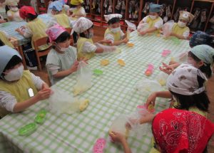 今日すぎ組さんはクッキングをしました。