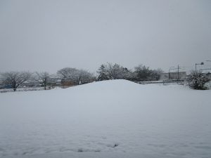 園庭も真っ白な雪景色となりました。「早く雪遊びしたい!」と