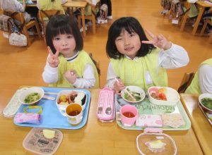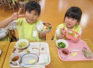 保育園に戻り、今日、以上児さんは「手作りお弁当の日」でした。