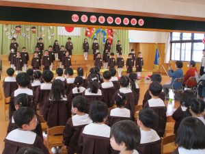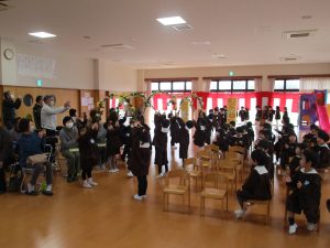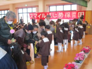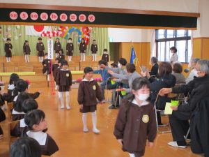 2024.03.19 お知らせ 卒園式リハーサル 今日は、すぎ組さんのほのぼのクラブの皆さまをお招きし、 「卒園式リハーサル」を行いました。 本番と同じ内容で行いました。 お行儀も良く、言葉や歌の発表がしっかりとでき、立派でした。 子ども達の姿に、ほのぼのクラブの皆様、そして職員も 胸が熱くなりました。本番までもう少し・・・ 今年度最後のほのぼのクラブとなりました。子ども達手作りのペンダントを プレゼントしました。本日はありがとうございました。