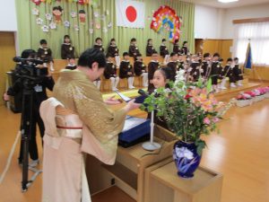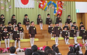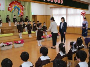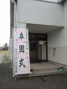 2024.03.25 お知らせ 卒園式 今日は、第16回卒園式が行われました。 今年度は、つばき組さん・さくら組さんが参加し、 一緒にお祝いしました。 園長先生より、一人一人証書を授与されました。 子ども達の元気な歌声や、言葉の暗唱、お行儀とどれも立派でした。 頼もしく成長したすぎ組さんの姿に胸が熱くなりました。 4月からは1年生! 楽しみですね。 保護者の皆様、本日はありがとうございました。 🌸すぎ組さん、ご卒園おめでとうございます🌸