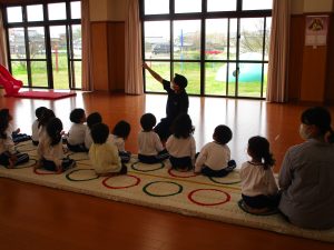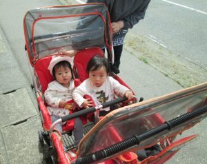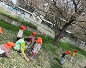 かえで組さん、もみじ組さん(0歳児)は近くの遊歩道まで