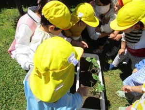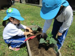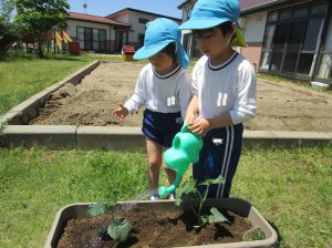 2024.05.14 お知らせ 今日の保育園☺ 今日は良いお天気となり、気温が高くなりましたね。 つばき組さん・さくら組さんは野菜の苗を植えました。 苗の様子をじっくり見たり、上手に植え、水やりをしてくれました。 これからの生長が楽しみですね。 今日のもみじ組さん。園庭で元気一杯でした。 もみじ組さんはオクラを植えました。苗の様子に興味津々でした。 また園庭で遊びましょうね🎵