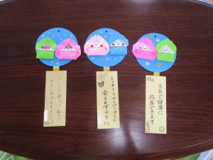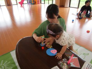 2024.06.21 日々の様子 うさちゃんクラブ🐰 今日は、うさちゃんクラブ(未就園児の会)が行われました。 4歳児つばき組さんも参加し、歌や踊りの発表、うさちゃんクラブの お友達と一緒に手遊びもしました。 はじめて会に参加したつばき組さん。 「赤ちゃん可愛いね~💗」とうっとりしながら 頭をなでたり、握手したりと触れ合いを喜んでいました。 今月は七夕飾りを作り、素敵な作品が出来上がりました。 願いが叶うように、園の玄関に飾ります🎋 ハイハイしたり、ボールに触れ可愛い姿でした。 ご参加ありがとうございました。