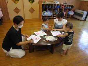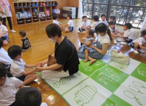 つばき組さんも一緒に参加し、手遊びや、「バスにのって」を