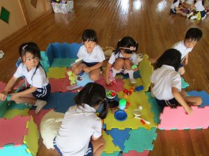 自由遊びでは、すぎ組さんが上手にお家を作り、ごっこ遊びを