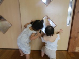ホールで遊んでいたもみじ組さん。お兄さん・お姉さんのクラスが