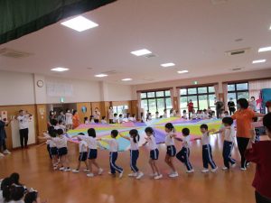 2024.10.07 日々の様子 スポーツカーニバル🚩(ほのぼのクラブ) 10/4(金)ほのぼのクラブの皆様をお招きして、 スポーツカーニバルが行われました。 3歳以上児さんと一緒に玉入れやフォークダンスをして頂き、 触れ合いを楽しみました。 また、”勇気100%”の曲に合わせてバルーンの発表もし、 「すごいですね!」「きれいですね!」「初めてみました。」等 お声を頂きました。 少しの時間でしたが、みんなで伸び伸びと体を動かし、 スポーツの秋を楽しむことができました☺