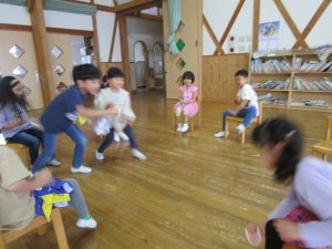 ゲームをしました。じゃんけん列車やフルーツバスケットをして盛り上がりました!