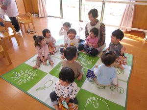 初めに、「はたけのあじ」という紙芝居の読み聞かせをし、