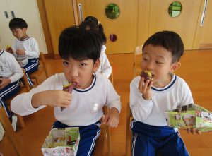 お芋掘りから1週間干したさつまいもはとても甘く、みんな夢中に