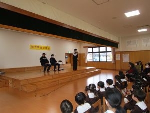 ついてお話をして頂きました。かっこいい制服姿に子ども達は