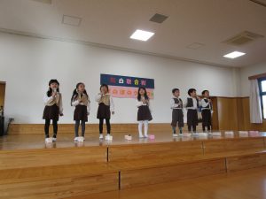 マイクを持ち、元気いっぱいに歌の発表をした子ども達です。