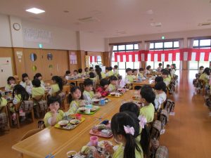 しました。みんなで食べる給食は美味しく、会話が弾み、