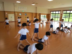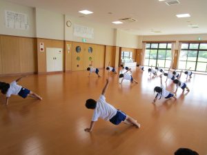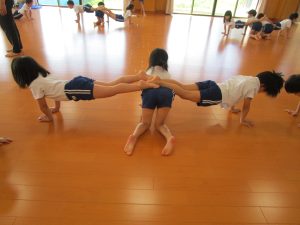 体を動かしています。今日は、組体操に挑戦しました!