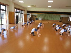講師の先生に指導して頂き、マット運動や鉄棒と伸び伸びと