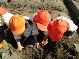 みんなで協力しながら土を掘っていくと・・・