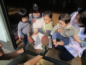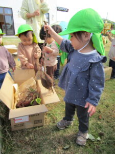 未満児クラスのお友達も、お芋に興味津々でした。