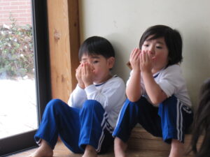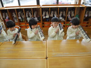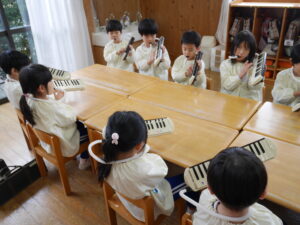 久しぶりにメロディオンをしました。姿勢よく吹く姿はさすが年長さんです!